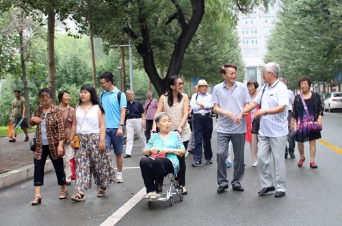 上午9时,校友们按捺不住激动的心情相互搀扶着来到了西区正门前,虽然校园当年的模样早已改变,但校友们对母校的眷恋和感激之情始终未曾更改,看看五十年来母校的发展与变化,表达对母校教诲与培养的感恩之情,也正是他们此行的共同心愿。校友们虽然有的已经50年未曾相见,但一见面还都能喊出对方的名字,激动地相互握手、拥抱、互致问候并一同合影留念。随后大家步入校园来到南北楼参观合影,这两栋楼正是当年的“地质楼”和“冶金楼”,虽然楼体早已扩建翻新,但校友们半个世纪前在这里勤奋学习的记忆永远留藏在大家心里。校友们一路上边走边聊,先后来到王大珩铜像、感恩石和校训石前参观留念。看到了功能完备的教学楼、新主楼和环境优美的校园后,校友们对陪同的“校友之家”志愿者说:“你们的条件比我们当年不知好了有多少倍,一定要努力学习,将来为社会做贡献。”在校友之家参观体验时,走廊两侧展板上六十年代的老照片引得大家驻足观看,大家围坐在当年模样的寝室里,聊着过去集体生活的艰苦和当年学习、生活中的苦乐,时间仿佛一下子又回到了50年前。在校友之家门前合影留念之后,校友们乘校车来到南区校史馆回顾母校的发展历程,讲解员讲解到学校取得的五次跨跃式发展时,校友们自发地鼓起掌来,激动和自豪的心情溢于言表,离开校史馆前,校友代表在留言册上为母校题字留念。