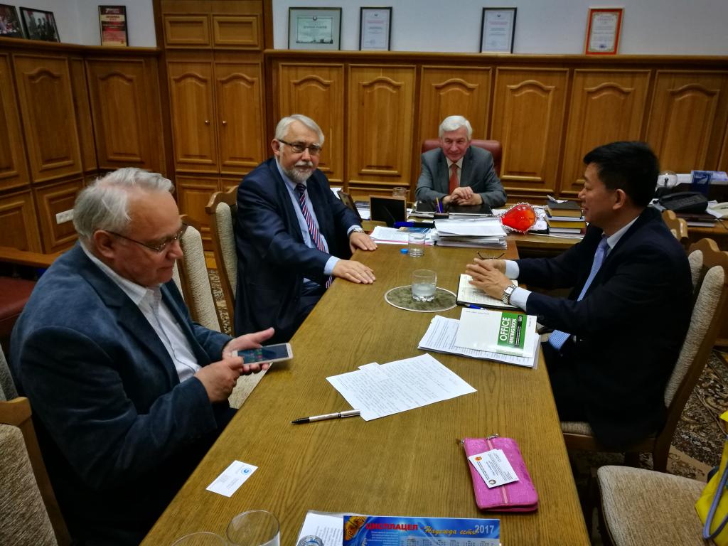 6月24日至25日,副校长郭二军一行来到白俄罗斯国立大学,白俄罗斯国立大学校长阿普拉缅一科、第一副校长伊瓦什科维奇、孔子学院副院长雷昂诺夫、核问题研究所所长马克西蒙科等与郭二军副校长举行了会谈。校长阿普拉缅一科对郭二军副校长的到来表示热烈欢迎,并表示希望与我校继续深化合作。伊瓦什科维奇副校长表示白俄罗斯国立大学一直视我校为中国境内最重要的合作伙伴,并且两校在学生交流、博士生合作培养及科研合作方面都取得了一定的成绩。郭二军副校长向白方转达了我校主要领导对白方校领导的问候,在称赞中白两国友好往来历史的同时,高度肯定了两校间的合作成果。他指出,我校一贯重视与白俄罗斯国立大学的合作,两校往来密切,具有扎实的合作基础。在联合研究生学院框架下,贵校不仅为我校培养了多名优秀的青年教师(16名教师获白俄罗斯国立大学博士学位),也为深化贵我双方的合作提供了保障。两校联合承担的中国国际合作项目经费总额为390万元人民币,该项目已取得理想的阶段性成果,得到项目管理部门的充分肯定。同时郭二军副校长向白方介绍了学校的人才特区战略,介绍了石墨烯协同创新中心等相关中心的建设情况及该领域的研究方向和取得的一些研究进展,通报了“碳纳米材料及其应用研究与教育联合实验室”的工作,他希望通过此次访问与白方共同协商确定下一阶段两校工作目标。