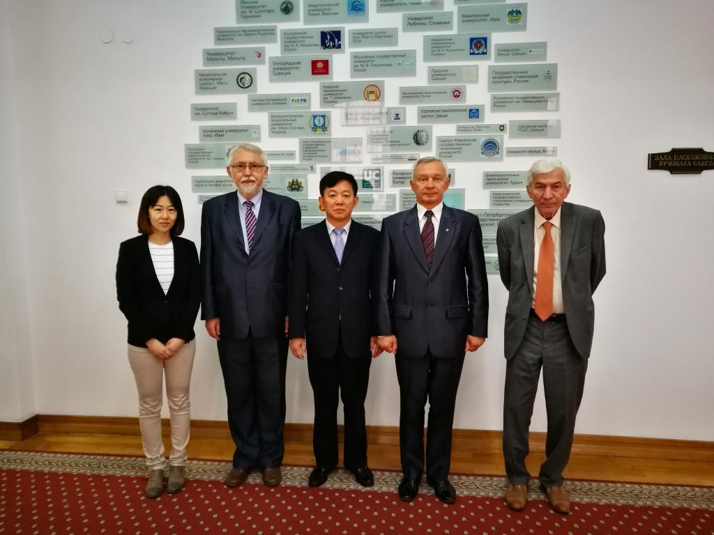 副校长郭二军一行与白俄罗斯国立大学校长阿普拉缅一科、第一副校长伊瓦什科维奇、孔子学院副院长雷昂诺夫、核问题研究所所长马克西蒙科合影