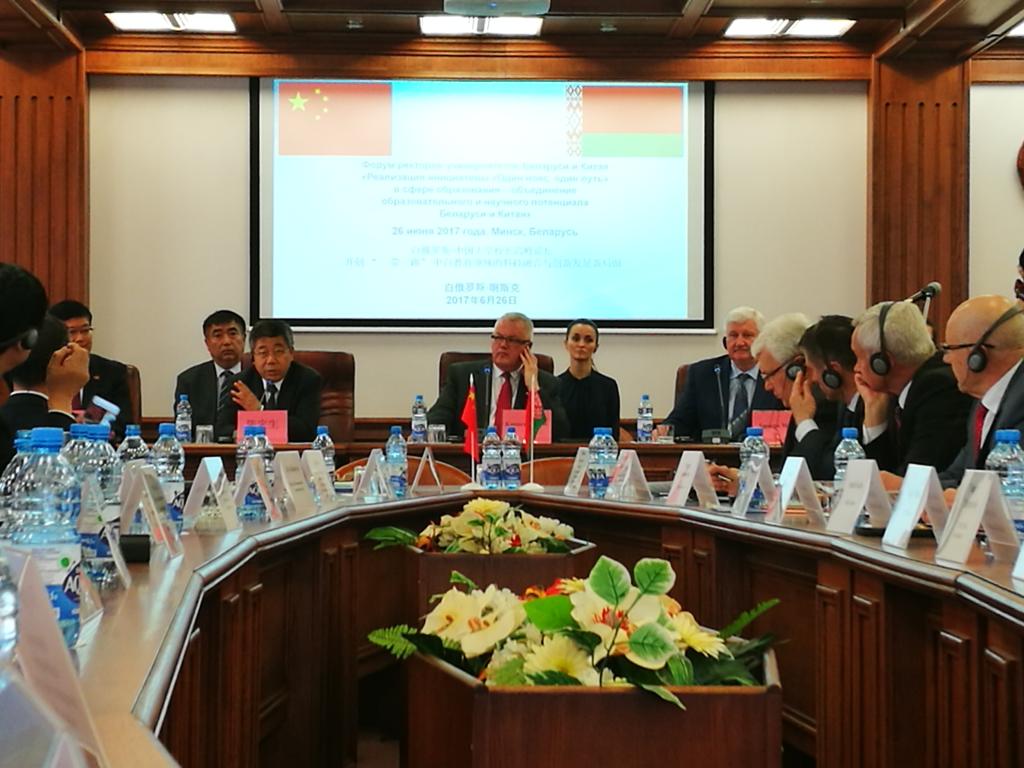 6月26日,副校长郭二军参加了中白大学校长论坛,中国教育部部长陈宝生和白俄罗斯教育部部长卡尔边科出席了论坛开幕式并致辞,陈宝生部长在致辞中就中白两国互派交换生、高校间合作、语言教育、青少年交流等方面内容进行了介绍,他表示两国元首在教育合作领域达成了高度共识,这为中白各高校在教育领域开展合作提供了良好基础。开幕式结束后,由白俄罗斯教育部高教司司长卡斯彼罗维奇主持中白大学校长论坛活动,中白各高校在论坛上积极发言,进行了广泛而深入的交流。副校长郭二军听取了中白各高校的发言,并代表我校做了“贯彻‘一带一路’共赢战略,深化高层次人才培养与科技合作”的主题发言,向中白各高校介绍了我校情况、我校与白方高校的合作情况及未来合作设想。他表示未来我校希望在已有合作的基础上进一步丰富合作内涵、拓宽合作领域,与白方各高校共同为“一带一路”建设培养急需人才,提供技术保障,坚持优势互补,实现发展共赢。论坛结束后副校长郭二军还与白俄罗斯波洛茨克国立大学第一副校长维格拉进行了交流,双方表示希望未来能建立友好的合作关系。