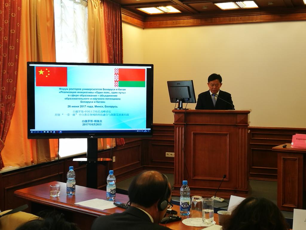 副校长郭二军代表我校在中白大学校长论坛上做主题发言