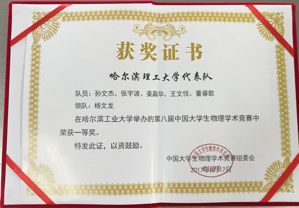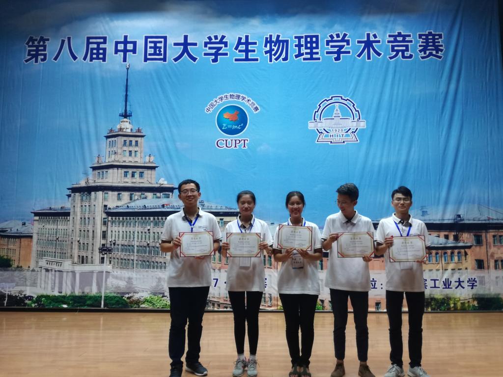 第八届全国大学生物理学术竞赛近日在哈尔滨工业大学落幕。经过4天20场比赛的激烈角逐,我校代表队取得了历史性突破,总成绩进入100所参赛高校的前15%,喜获一等奖!