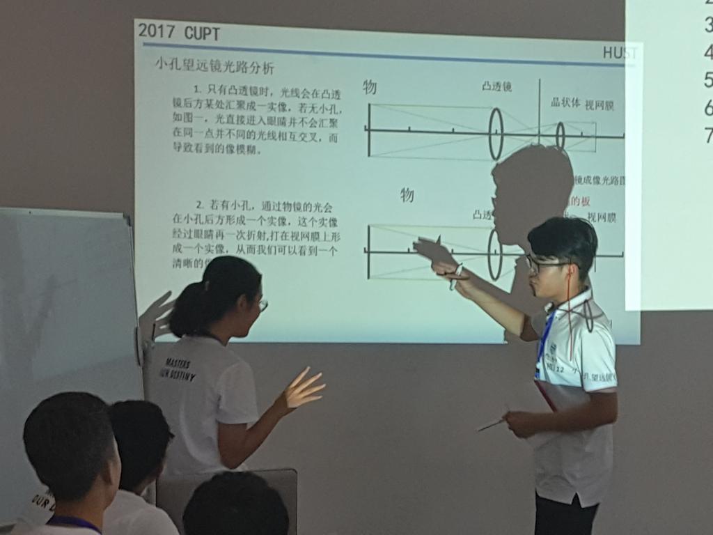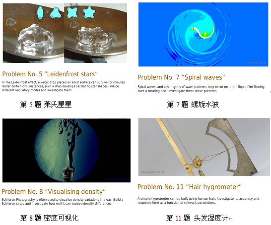 此项赛事所用的17道比赛题目来自当今国际上最有影响力的年度物理学竞赛之一的“国际青年物理学家锦标赛(IYPT)”。题目均为世界范围内征集,开放新颖,贴近生活实际。例如:研究流在旋转光盘上的水波如何运动,建立物理模型并阐述相关参数影响规律;探索热表面上水珠的莱氏星星的形成机理;搭建可精确测定空气密度变化的可视化仪器,研究影响其灵敏度的参数;利用人的头发制作湿度计,建立湿度测试精度和响应时间的方程……;参赛学生在解决这些实际问题中探究其物理本质、在攻克难关中提高创新能力。