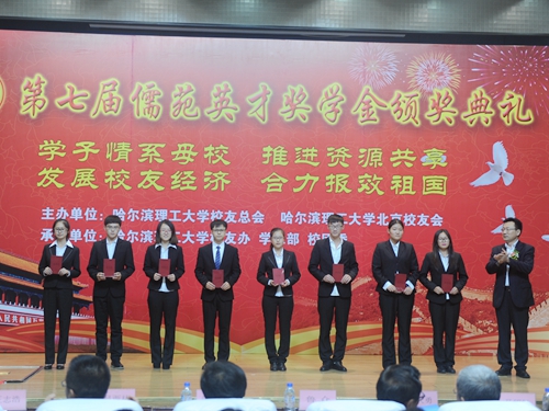 伴随着展示北京校友会风采的回顾视频的播放,现场师生了解了北京校友会凝聚在京校友和回馈母校的历程。北京校友会一直秉承“学子情系母校,推进资源共享,发展校友经济,合力报效祖国”的宗旨,将广大在京的哈理工校友凝聚在一起。北京校友会已成为在京哈理工人的校友之家,也是广大理工学子实习、就业、创业的平台,更是学校在首都对外宣传的重要窗口。北京校友会已连续7年于每年9月校庆日前后在母校举行“儒苑英才奖学金”颁奖典礼,充分体现了北京校友会助力学子成长、感恩回报母校的深厚情谊。“儒苑英才奖学金”是我校北京校友会为在校本科生设置的长期奖励项目,每年评定一次,奖励额度为2万元/人,是我校现设各类奖学金人均奖励额度最高的。