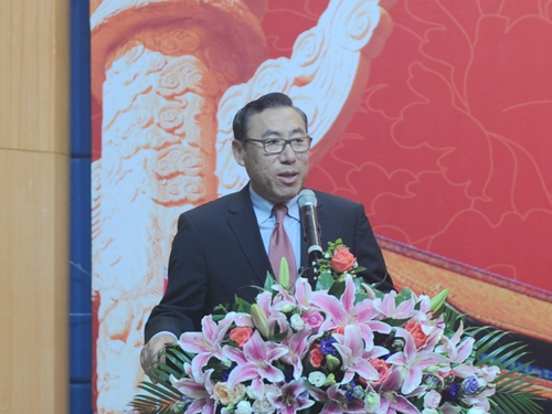 纪委书记王志浩在典礼上讲话。王书记代表学校对北京校友会各位校友代表回校团聚表示热烈欢迎,对广大北京校友心系母校、捐资助学的真情和爱心表示由衷感谢。王书记指出,北京校友会连续七年开展“儒苑英才奖学金”活动,累计发放奖学金超过百万元,如今,“儒苑英才奖学金”颁奖典礼已成为金秋九月校园里令人最期待的一件盛事,获奖同学更为数以万计的在校学生树立了学习的榜样。王书记希望获得奖励的同学们珍视这份特殊荣誉,不辜负校友的期望,取得更大进步,更希望广大在校学生以今天荣归母校的诸位校友为榜样,与广大校友一起把哈理工的招牌擦得更加闪亮!最后,他真诚希望广大校友都能常回家看看,并把美好的祝福送给每一位哈理工人!