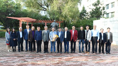 郭光灿院士一行与我校代表在王大珩塑像前合影