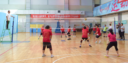 为庆祝第33个教师节的到来,喜迎十九大胜利召开,学校于9月11日--22日举办了教职工排球比赛。本次比赛由校工会主办,教职工排球协会承办,来自各单位共十支代表队参加了比赛。比赛采用男女混合组队形式,分小组赛、半决赛和决赛三个阶段进行。