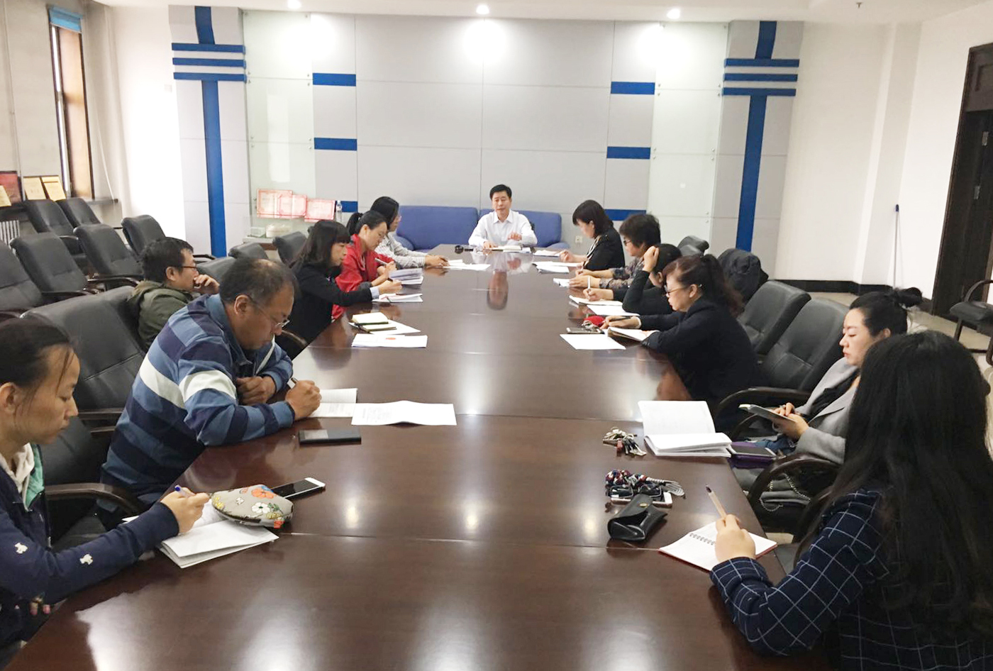 为了落实学校迎评促建工作,图书馆于9月26日召开本科教学审核评估工作动员会。曲贵民馆长主持会议,杨威、程坤两位副馆长、各分馆馆长及各业务部主任出席会议。