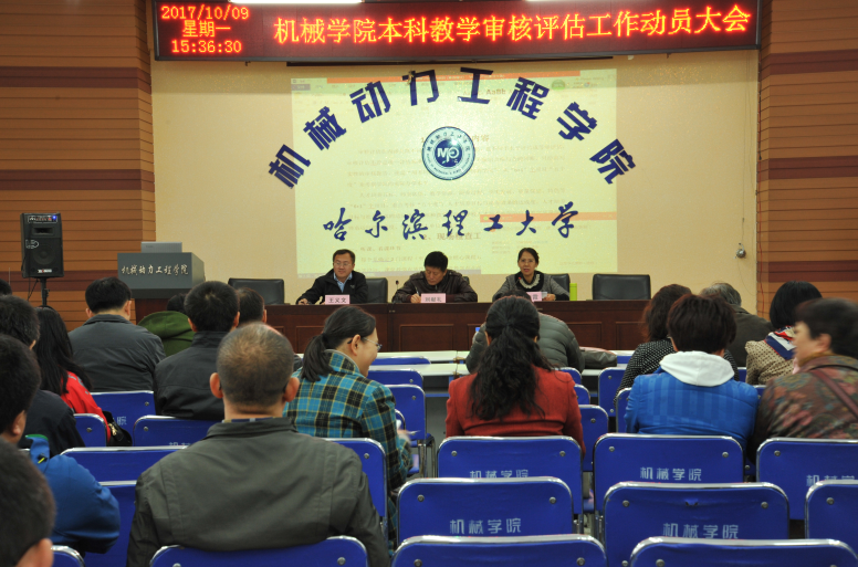 10月9日下午,机械动力工程学院召开了全院本科教学审核评估工作动员大会,院长刘献礼、党委书记邓彩霞,副院长王义文、姜彬、张元出席会议,学院全体教师参加会议。会上,党委书记邓彩霞首先传达了学校领导关于本科教学审核评估工作动员会的会议精神,并主持了会议。