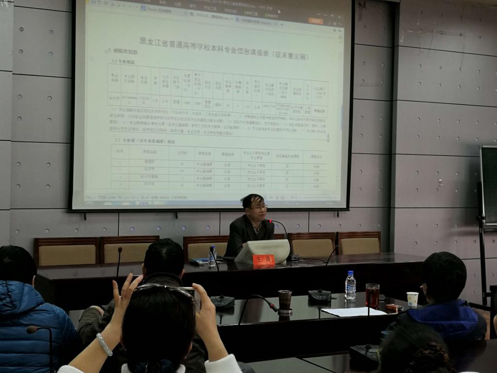 论证会由王宇奇教授主持,他强调了本科专业水平评估的重要性,指出黑龙江省普通高校本科专业水平评估工作将全省所有高校的相同专业按照统一的指标体系进行评估排序,其结果将直接影响到省教育厅本科专业建设政策的指向,影响到各高校本科专业的招生和就业,更关乎各高校本科专业未来的生存与发展。随后,会计系主任王涌就“会计学”专业水平评估的前期准备工作,从专业信息表填报、佐证材料准备、定性指标撰写和专业特色凝练等方面进行了详细介绍,并就评估准备中发现的问题进行了深入挖掘。随即学院专家及参会老师展开了热烈的讨论,对评估指标的内涵进行深入解读,大家集思广益、深度挖掘,以期最大限度地整合资源、提升水平。讨论中对专业的培养定位、培养模式及培养目标,数据来源及口径,课程与培养目标及专业方向的支撑与衔接进行了论证,并针对如何利用现有素材提升报告的亮点及特色、定性指标内涵的挖掘和提升等方面进行了深入的探讨。最后,院长綦良群教授对论证会做了总结,他强调每位教师对于本科专业水平评估工作要积极参与,要当“议员”,不能只当“观众”,在评估报告的自评中打分要有依据,要重视佐证的搜集和报告内涵的挖掘。