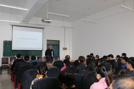 在专家组进院召开的全院大会上,专家组组长郭建英同志介绍了本次预评估的目的及各项要求,艺术学院教学副院长程显峰介绍了艺术学院的总体概况和开展评估以来所做的工作。