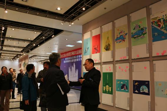 专家组观看理工大学和省广协主办的公益海报竞赛展