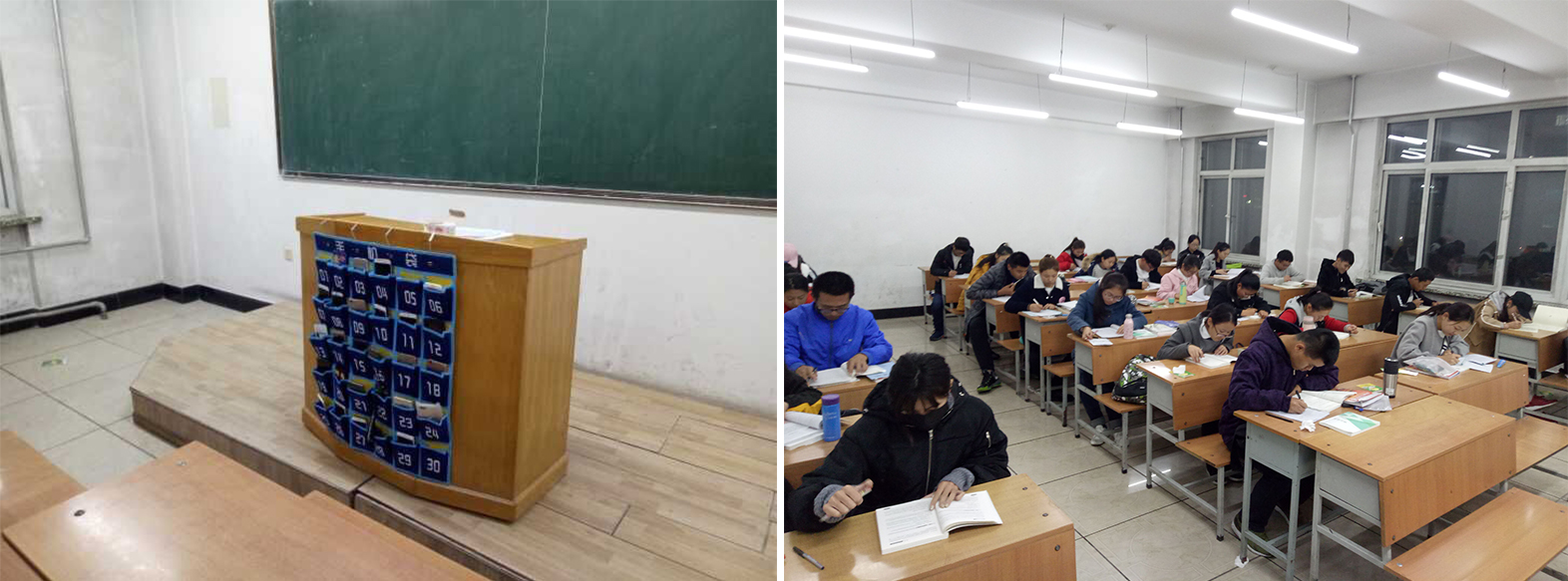学业助理班主任张超然同学为班级准备的手机“停机坪”陪同新生晚自习