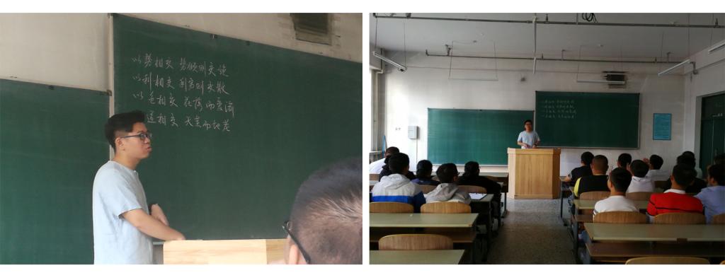 化学与环境工程学院材化16-1班于涛源同学担任材化17-1班助理班主任,他坚持以服务新生为己任,围绕“教室”积极开展工作。他积极融入新生当中,关心他们的生活、心理状况,同时了解每一位新生的性格、思想、学习态度。在宿舍中,他与新生进行沟通,了解他们的情况,宣传安全知识;在教室里,他严格要求每位新生做好笔记,利用教室环境适当开展班级文艺活动,增强了班级的凝聚力。作为学长,他帮助新生逐渐地适应由高中到大学的转变;作为班助,他组织开展班级优秀学生经验交流会,加强与班主任、辅导员的沟通和交流。