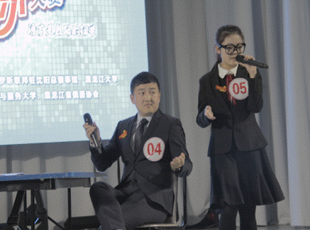 我校选手胡东升和陈晓彤演绎《办公室的故事》片段