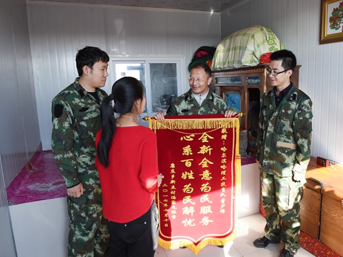 贫困户陈雪向董少伟赠送锦旗表示感谢