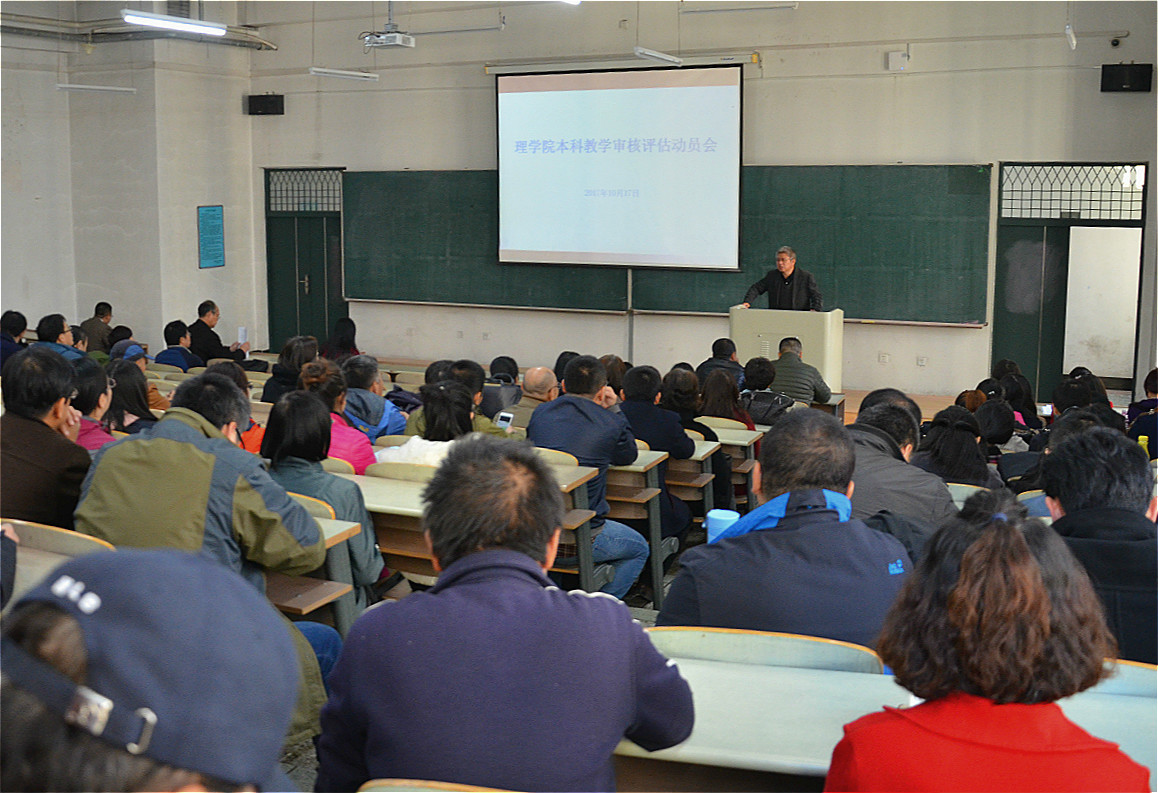 动员会上,计东海院长向全院教职工阐释了此次本科教学审核评估的目的、意义和重要性。他指出,理学院承担着学校大量的基础教学工作,教学质量不仅关乎学院的长远发展,更关乎学校的整体教学水平,教学评估就是对学院整体办学水平和教学质量的客观评价,因此全院教职工要对评估工作提高认识,坚持以评促建、以评促改、以评促管,把个人发展与学院发展紧密联系,以大珩先生“教研并举,理工结合;卓育人才,亦能亦德;”的办学理念贯穿教育教学始终,通过评估凝聚共识,形成合力,为理学院发展做出积极贡献。计东海院长还对全院教职工在迎评期间提出四点要求:一、提升认识、高度重视;二、发挥作用、勤于思考;三、工作积极、精神饱满;四、遵守规章、尽职尽责。谭昌龙副院长对此次审核评估所涉及的什么是审核评估、为什么要审核评估、审核评估评什么、我们要做什么等问题做了详细解读,对学院的审核评估工作做了具体的部署和安排。端木永东书记向全院教职工通报了学院上一阶段审核评估工作的准备情况,并要求全院教职工要严格执行学校的各项规章制度,特别是考勤和请销假制度;他强调,全院教职工在教育教学、人才培养以及审核评估等工作中,统一思想,提高认识,团结协作,以饱满的工作状态和良好的精神风貌,迎接学校专家组的审核评估检查。