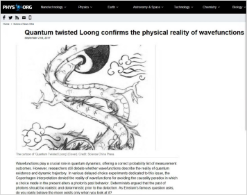 此外,研究人员还依据结果绘制了一幅卡通画《量子螺旋蟠龙》,向惠勒(曾绘制了著名量子漫画The Great Smoky Dragon)等为该量子力学基本问题研究做出过突出贡献的物理学家们致敬。