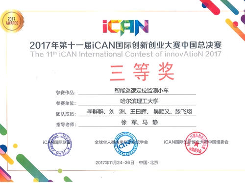 “智能巡逻定位监测小车”荣获国家三等奖