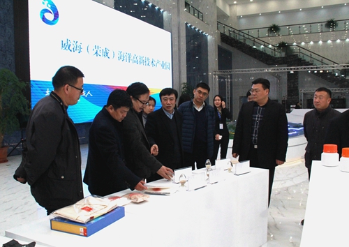 11月28日下午,赵国刚书记来到威海(荣成)海洋高新技术产业园。产业园负责人宋伟峰向赵书记详细介绍了园区整体规划、园区建设进展及未来发展方向,并陪同赵书记参观调研了园区内正在建设的海洋专业实验室和技术转化新成果,具体了解哈理工实验室建设及教师入园开展科研工作情况。赵书记表示,党的十九大提出要加快海洋强国、贸易强国建设,威海地区海洋区位优势明显、海洋资源丰富,结合海洋经济产业,校地之间可在科研创新、人才培养等方面搭建合作平台,形成集产学研合作与人才输送为一体新格局,在海洋领域开创哈理工海洋特色、打造哈理工新品牌。