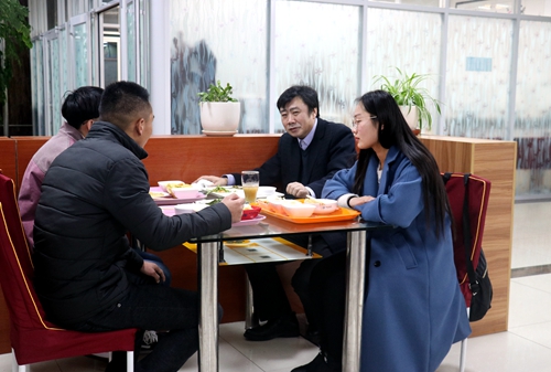 27日晚,赵书记在学院第二食堂用餐时与学院学生作了交流。他与学生们畅谈十九大报告内容、主要矛盾的变化,研讨新时代、新起点、新征程,交流学习贯彻十九大精神心得。同时,三名学生结合自身学习发展经历讲述了自己在学院的学习生活、师生感情深厚的故事,其中15级机电的班长李振从班级学习、学生活动、科研项目等方面介绍自己的情况,讲述了学院教师指引他成长的过程,另外两名同学则是从创业、参军等方面讲述了自己的大学生活。