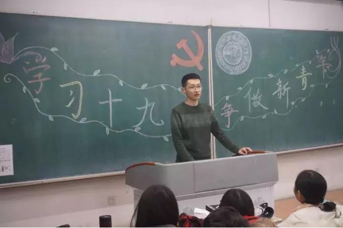12月1日,国际文化教育学院就党的十九大精神和张庆伟书记来校讲话精神召开主题团日活动,学院团学骨干作为代表上台分享了自学成果。