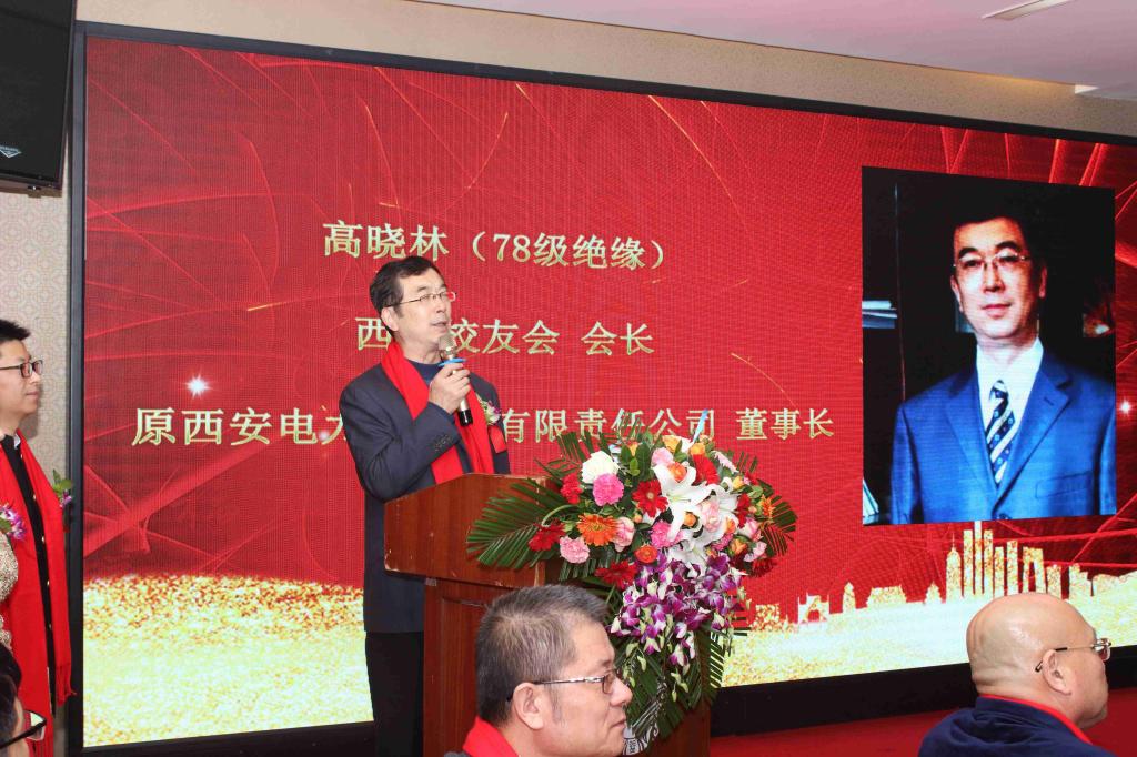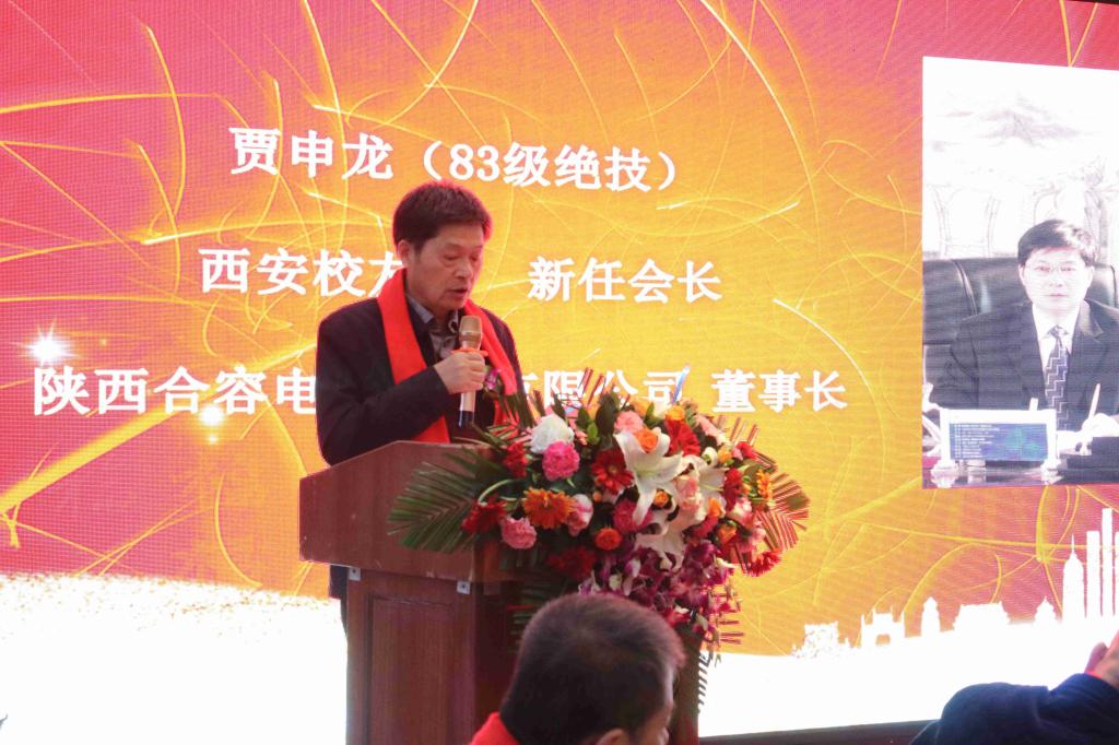 校党委常委、纪委书记王志浩宣读了校长、校友总会会长李大勇的贺信,并代表母校老师为全体校友送上了祝福和美好祝愿。新任会长、陕西合容电气集团有限公司董事长贾申龙(绝技83级)在致辞中首先表达了对母校、校友信任的感谢,表示要发扬历届理事会成员心系母校、无私奉献的优良传统,为校友们搭建联络感情、互相支持帮助、共促事业发展的平台,携手努力,共谋发展,有决心、有信心和广大校友共同努力建设好西安校友会,一定不辜负母校和广大校友的殷切希望!校友会名誉会长、原陕西华建工程管理咨询有限责任公司董事长夏建国(电子77级)在致辞中为广大校友送上美好的祝福,祝愿西安校友会越办越好。最后,天津校友会会长吕超、沈阳校友会会长石延平、东莞校友会会长聂东华、烟台校友会副会长庞彦民、广东校友会秘书长罗显新、苏州校友会副秘书长丁文强先后致辞,对西安校友会换届大会的成功举办表示祝贺,并期待加深与西安校友会之间的交流合作,携手为母校增光添彩。