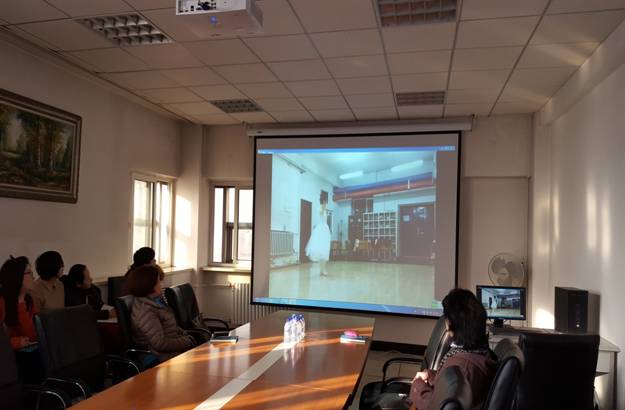 会前陆岩副书记与大家一起观看外国语学院女工才艺比赛展示视频