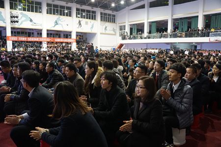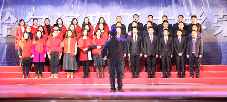 在庆祝举国欢庆的党的十九大胜利召开、纪念“一二·九”爱国主义运动82周年之际,为学习宣传贯彻落实十九大精神、省委十二届二次全会精神、省委书记张庆伟重要讲话精神、校党委书记赵国刚在学院干部及骨干教师大会上的重要讲话精神,12月8日晚,荣成学院在文体中心举行“庆祝十九大,共筑中国梦”合唱比赛。校党委常委、工会主席兼荣成学院院长徐向晨,学院党委书记刘云峰,常务副院长杜野,副院长张桂华,院党委副书记兼副院长王坤,各系、部、办负责人、教师代表及全体学生工作人员出席本次比赛。本次比赛特邀荣成电视台《我是大明星》栏目制片人刘爱民主任,荣成电台私家车广播主持人晓光老师、路飞老师,机械工程系宋润斌教授,学院保安任涛老师,大学生艺术指导教师王洁、高飞、龙艳芳和徐平担任评委。