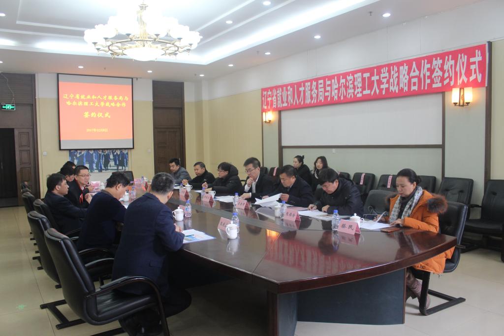 座谈结束,王志浩书记与陈绍宏局长共同签署了《辽宁省就业和人才服务局与哈尔滨理工大学战略合作协议》,会后双方人员合影留念。