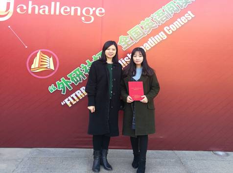 2017“外研社杯”全国英语演讲大赛总决赛二等奖获奖选手许琪同学与指导教师杨鑫老师合影