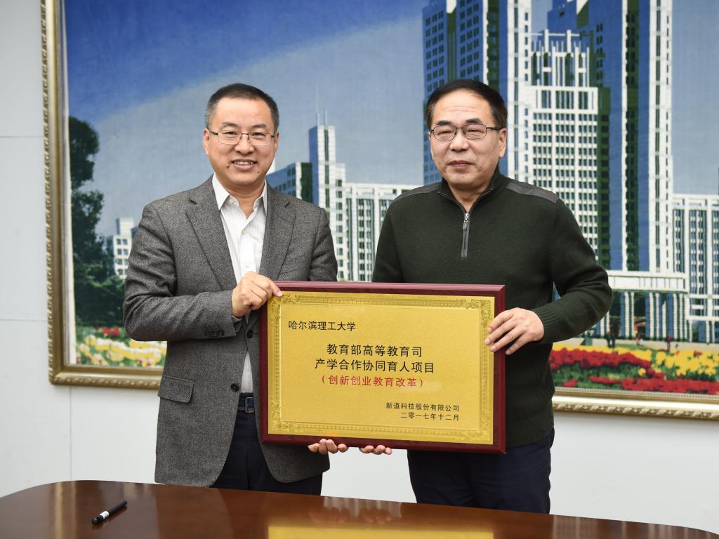 12月19日下午,在教学主楼第二会议室,刘胜辉副校长代表我校与来访的新道科技股份有限公司(简称:新道科技)创始人、总裁郭延生先生共同签署了《哈尔滨理工大学与新道科技股份有限公司战略合作框架协议书》,郭延生总裁向我校授予“教育部高教司产学合作协同育人项目战略合作院校”牌匾。签字和授牌仪式后,新道科技一行5人与我校刘胜辉副校长、教务处、创新创业教育指导中心、经济与管理学院和各工科学院领导进行了座谈。
