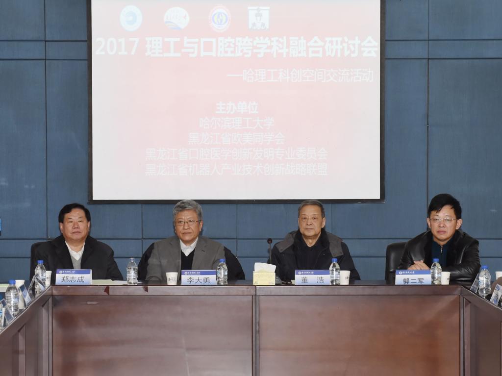 12月23日,2017理工与口腔跨学科融合研讨会在我校西区1号楼第四会议室成功召开。本次会议由机械学院张永德教授联合黑龙江省欧美同学会、黑龙江省口腔医学创新发明委员会及黑龙江省机器人产业技术创新战略联盟共同发起。黑龙江省欧美同学会会长董浩、副会长郑志成,我校校长李大勇、副校长郭二军、科技处处长吴明阳,黑龙江省口腔医学创新发明委员会会长王雪、我校机械学院、建筑学院、电气学院,哈尔滨工业大学、东北林业大学、齐齐哈尔大学、黑龙江科技大学、哈尔滨医科大学附属第二医院、第四医院、黑龙江省医院、哈尔滨市第二医院、黑龙江省中医药大学附属二院及哈尔滨雅致科技有限公司等40余名专家学者、口腔科医生共同参与了本次研讨。会议由科技处副处长相征主持。