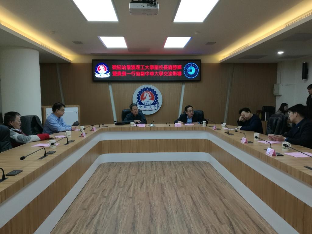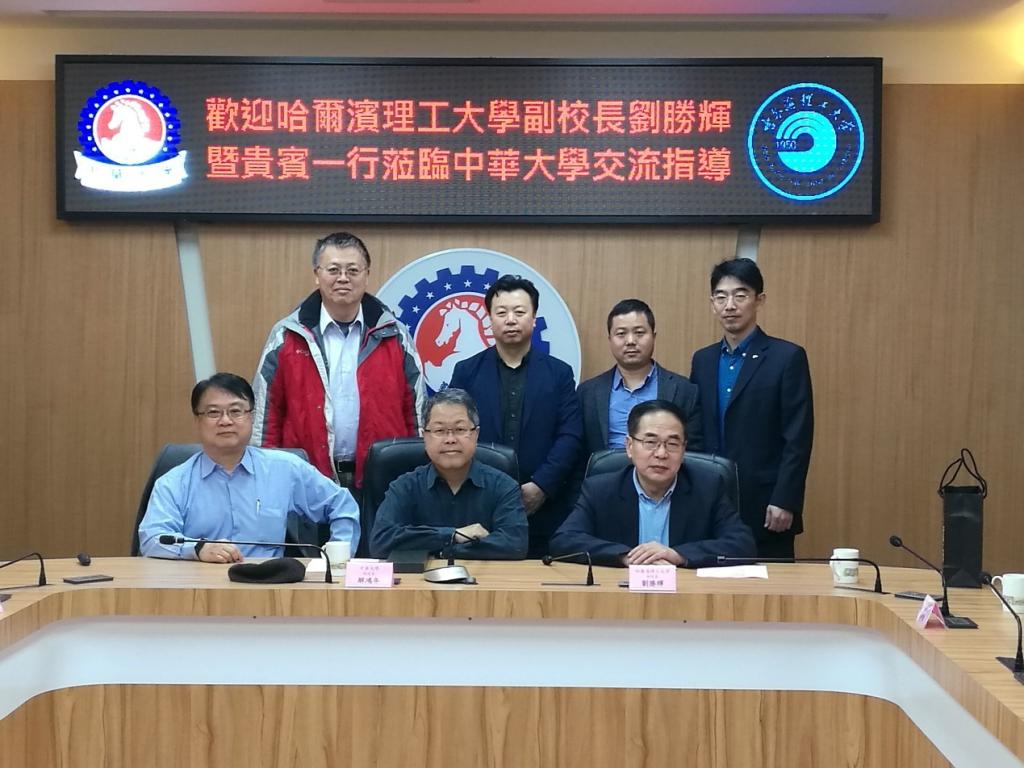在台湾中华大学,解鸿年副校长、游坤明副校长代表中华大学对我校刘胜辉副校长一行来访表示热烈欢迎。欢迎会上,解鸿年副校长详细介绍中华大学的人才培养、科学研究、学生活动、产学研结合、创新创业教育、全方位校企合作、跨领域学分学程、创新创意种子教师培训、国际化培养、职场争霸培训、企业实习网络、毕业生“三高”(就业率高、毕业生薪资高和企业满意率高)等情况,给我校代表团留下了深刻印象。刘胜辉副校长对台湾中华大学的邀请表示衷心感谢。他转达了我校党委书记赵国刚和校长李大勇的问候,并介绍了我校的“十三五”发展规划和“双一流”院校建设情况。刘胜辉副校长还与解鸿年副校长就双方共同主办“龙江—台湾高校青年科技创新创业大赛(梦想工场)”事宜达成初步合作意向。