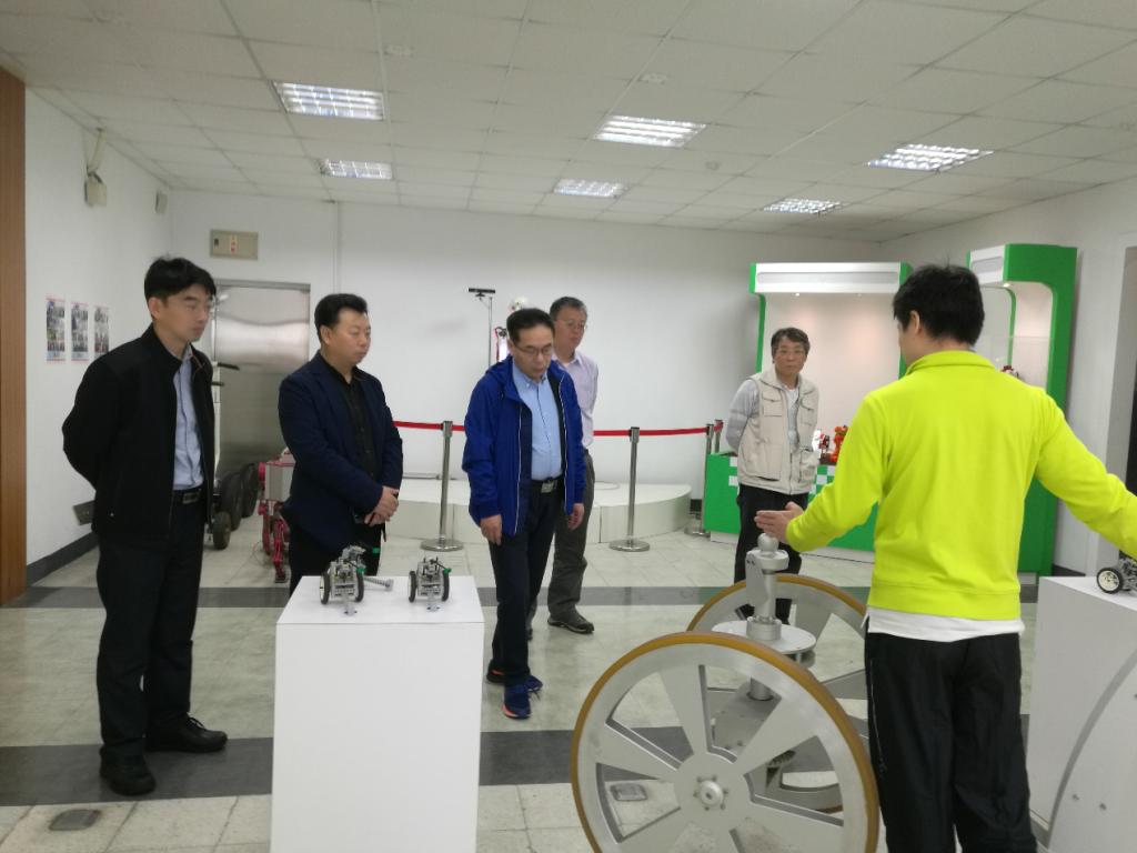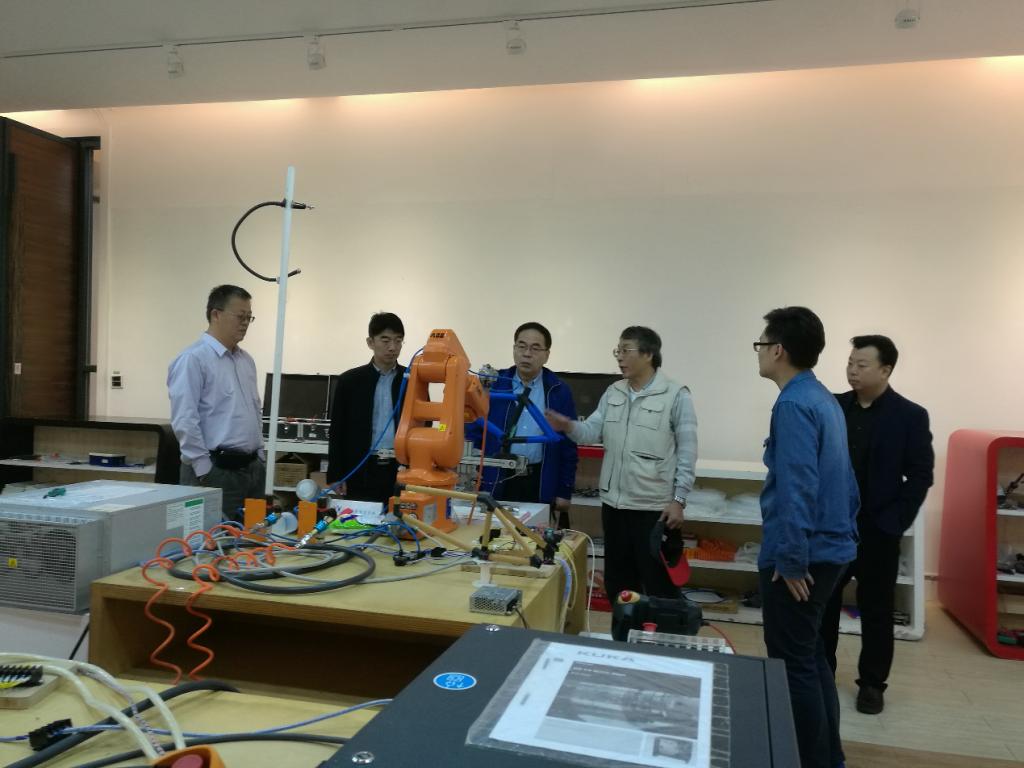 在台北城市科技大学,我校代表团受到校方热烈欢迎,走访了该校教务处和联合服务中心,参观了教授研究室、各类实验室和学生社团活动中心。在资深教授邱弘兴博士的陪同下参观了台北城市科技大学工学院的“机器人博物馆”。详细了解了城市科技大学办学情况和人才培养现状,亲身体验与城市科技大学制造的人形机器人互动,观看机械手臂运转、焊接、拾取、分拣的演练,了解学生在机械手编程控制等方面的实操,对人才培养方案、实验室建设资金、实训课程的设置、实验器材的共享、学生动手能力培养、产学合作成果等方面进行了深入细致的了解。