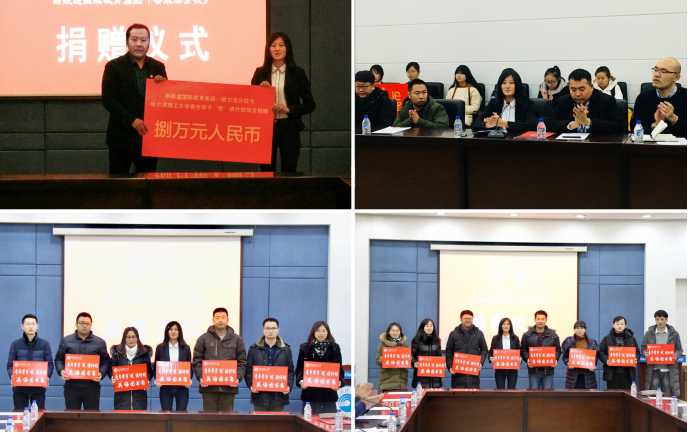 12月29日,我校与新航道国际教育集团(哈尔滨分校)青年学子‘悦’读基金捐赠仪式在西区1号楼第四会议室举行。校团委书记姜国玉、新航道国际教育集团哈尔滨分校校长王珊、各学院团委(团总支)书记、新航道国际教育集团哈尔滨分校王强、王俊然及在校生代表参加了捐赠仪式。签约仪式由校团委曹石主持。