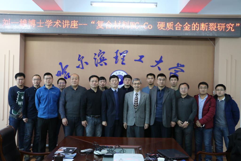 当日上午,专家在工程训练中心主任杨树财教授和机械动力工程学院副院长王义文教授的陪同下参观了我校“高效切削及刀具国家地方联合工程实验室”和工程训练中心。随后,刘一雄博士为机械学院与工程训练中心部分教师和研究生做了主题为“复合材料WC-Co硬质合金的断裂研究”的学术报告。报告中介绍了硬质合金复合材料非线性断裂的研究过程,并从工业生产的角度对硬质合金断裂模型的应用进行了详细的讲解,其内容对我校刀具技术的研究具有重要的指导意义。报告结束后,刘博士与广大师生进行了深入的交流和探讨,并认真回答了师生们提出的问题。刘一雄博士、何耿煌博士还与师生进行了进一步的学术交流、合作座谈。机械学院院长刘献礼教授、副院长姜彬教授和王义文教授、工程训练中心主任杨树财教授等参加了座谈会。双方都期望我校将同美国肯纳公司和厦门钨业股份有限公司等国内外著名企业加强深层次合作,均表示要本着“优势互补、协作共进”的宗旨,共同搭建战略发展合作平台,为学生的学习、就业提供更加广阔的空间,携手培育素质高、能力强的优秀人才,实现多方的共赢发展。