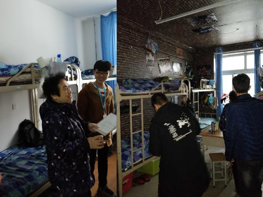 校团委书记姜国玉、学生处副处长蔡野带队检查西区2、6、7公寓西区