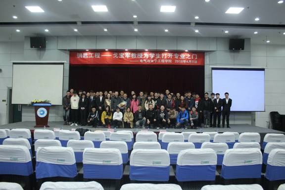 为深入贯彻落实学校集中轮训精神,加强对学生的思想引领和专业教育,把思想提高转化为切实行动,把精神鼓舞转化为工作热情,电气与电子工程学院于2018年4月3日18:00在一号楼0220报告厅举办“钥匙工程”讲座,特邀电气学院戈宝军教授主讲。电气学院党委副书记李丽、副院长陶大军、团总支书记周广、2017级辅导员刘书齐及2017级全体同学参加了此次讲座。
