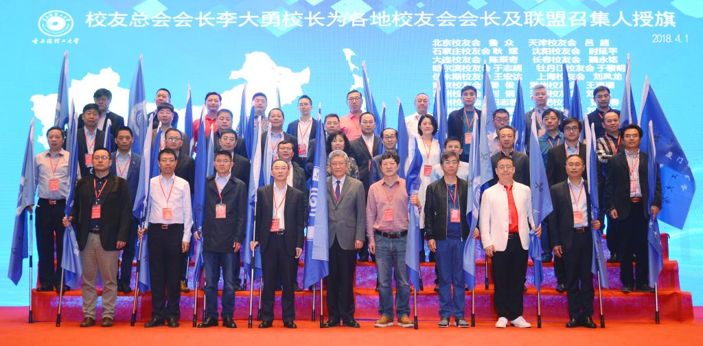 李大勇校长为各地校友会、校友企业联盟授旗