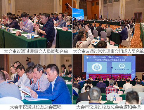 大会首先听取审议了校友总会秘书长王琦对三届理事会以来主要工作情况的汇报,之后表决通过了《校友总会第三届理事会人员调整名单》,校友总会顾问刘君对人员调整情况进行说明,校友办主任董传友被推举为总会秘书长,理事会组成人员由44人增至146人。本次会议起总会增设常务理事会,常务理事由总会有关负责人、各地会长、联盟召集人和筹备组组长担任,经到会理事举手表决,45人当选常务理事。因我校校友总会章程始终未经会员代表大会审议表决,随着工作的推进,目前已具备确定章程的条件,故在本次会前与会代表即对章程进行了充分的交流研讨,在会上全体代表通过表决正式确立了《哈尔滨理工大学校友总会章程》,同时确定了总会会标、会旗和地方校友会会旗,校友总会工作从此步入了新阶段。在授旗仪式上,李大勇校长分别向参会的38个地方校友会和校友企业联盟授旗,最后手持总会会旗与大家合影留念。