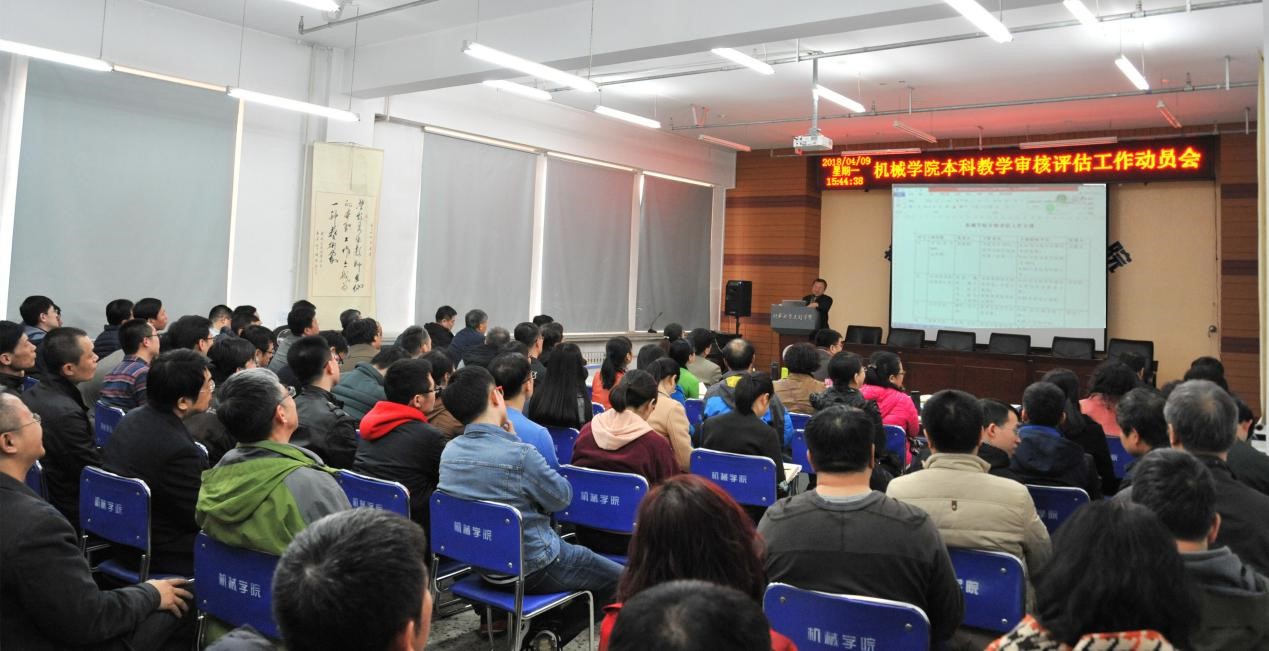 刘献礼院长在动员大会上解读了目前全院开展的工程教育认证评估、本科教学审核评估、机械专业本科教学水平评估工作的内容和差异,使全院教师对评估工作统一了认识;强调了本科教学审核评估对学院发展的重要性,并强调审核评估关系到学校创一流目标的实现,全体教职员工要把注意力、向心力、凝聚力集中到审核评估工作上来,高度重视审核评估工作;审核评估工作时间紧、任务重、要求高,各部门要严格按照学院制定的《审核评估工作实施方案》认真落实、扎实推进,思想上要高度重视起来,工作上要立刻行动起来,步调上要把各项工作统筹起来,以饱满的热情、昂扬的斗志、扎实的作风认真地投入到审核评估工作中去。