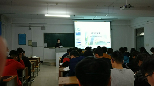 第二场观摩课主讲人为高分子系崔巍巍老师,观摩课程为面向16级本科生开设的专业课《高分子化学》,教学督导组俞泽民老师及部分学院青年教师参加了本次活动。观摩课上,崔巍巍老师利用传统板书和多媒体结合,多媒体手段运用恰当,教学思路清晰,内容深入浅出,师生互动充分、配合默契。