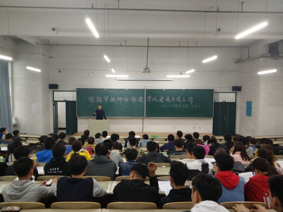 2018年4月23日晚上5点半,全体学生工作人员、各年级学生骨干(班长、团支书)、全体学生党员在新主楼A514召开自动化学院“迎接审核评估·推进学风建设专项工作”学生骨干动员会。会议由徐岩副书记做迎评动员。