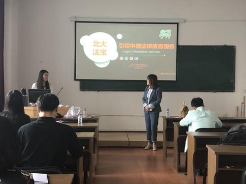 4月26日下午2点,在我校东区法学院多媒体教室举行了“北大法宝”检索系统的培训讲座,此次活动由我校图书馆主办,北大英华公司培训师李梦月为主讲人。法学院院长袁晓波、副院长韩冰、图书馆馆员张文晶、杨蕾,以及法学院教师、法学院研究生和部分本科生参加了此次讲座。