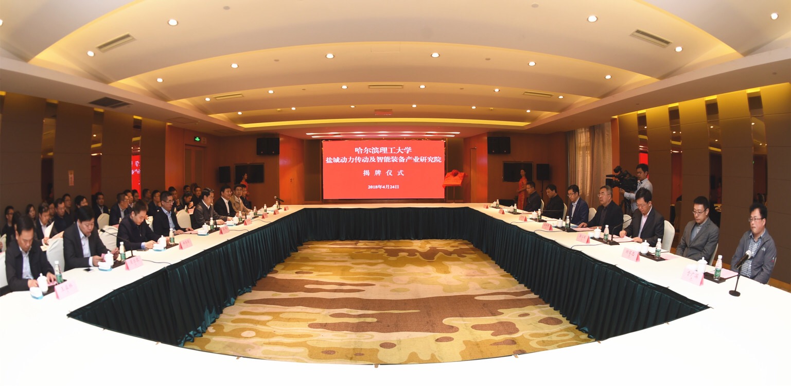 4月24日,哈尔滨理工大学盐城动力传动及智能装备产业研究院揭牌仪式在盐城市举行。学校党委书记张洪涛出席揭牌仪式,并与盐城市副市长孙轶共同为研究院揭牌。副校长郭二军,科技处处长吴明阳,自动化学院院长许家忠,机械学院副院长张元,科技特派员于广滨教授,科技处王永鑫出席活动。盐都区区长吴本辉,市政府副秘书长郝瑞耀,盐都区委常委、组织部部长王铁根,盐都区副区长肖乐农,副区长廉武卫,盐都区委组织部副部长兼人才办主任王益林,张庄街道党委书记张国胜以及盐都区政府办、人才办、发改委、经信委、科技局主要负责同志一同参加揭牌仪式。