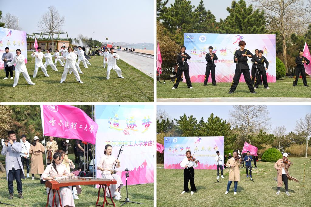 由大学生艺术团、民乐团、社团联合会、各系啦啦队伍组成的演出团队,用活力四射、异彩纷呈的表演为选手呐喊打气,为马拉松活动助威添彩。精心准备的23个节目中,民族器乐演奏以浓厚的古风色彩深深地打动了现场观众;太极拳表演吸引了众多市民的驻足观看;乐队和啦啦队的出色表现赢得了观众们的阵阵喝彩,将现场氛围推向高潮。互动演出活动让这场马拉松赛成为城市的节日,用碧海蓝天拥抱“荣马”,用歌声舞蹈迎接宾客,人与环境、人与人之间的和谐场景充分诠释了荣成滨海国际马拉松赛的文化魅力。