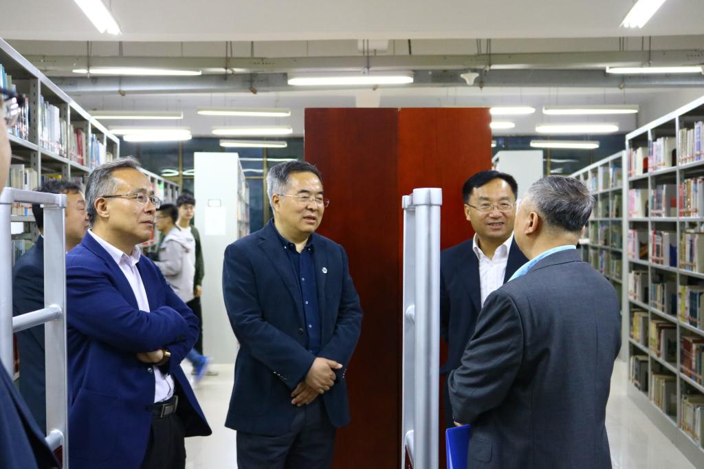 专家实地走访图书馆大厅听取了学生学习践行十九大精神、大学生志愿者服务地方、学生社会实践团队成果的情况介绍