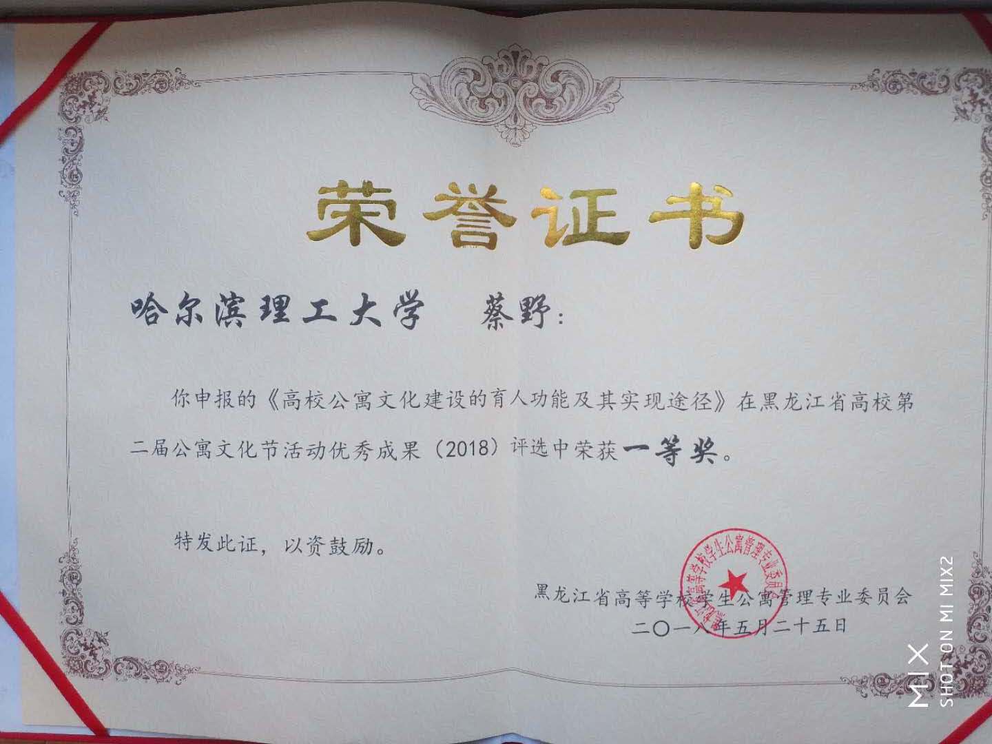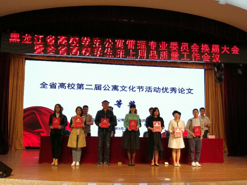 本次会议总结了第五届省寓专会工作、安排部署了第六届省寓专会工作,通报2017年全省高校床上用品工作情况和安排部署2018年相关工作,同时表彰了“全省最美公寓人”和全省高校第二届公寓文化节活动成果。此次评比从2017年10月开始征集活动材料,我校公寓管理中心组织开展形式多样、特色鲜明的公寓文化活动,引领大学生养成良好的生活习惯,树立正确的人生观和价值观,充分发挥了高校学生公寓的育人功能。最终,我校选送公寓文化节活动总结喜获“黑龙江省高校第二届公寓文化节活动”优秀成果一等奖,学生处蔡野老师申报的《高校公寓文化建设的育人功能及其实现途径》论文获得“黑龙江省公寓文化优秀成果”论文一等奖,得到了专家组的认可,受到了参会人员的赞赏和领导们的一致好评。