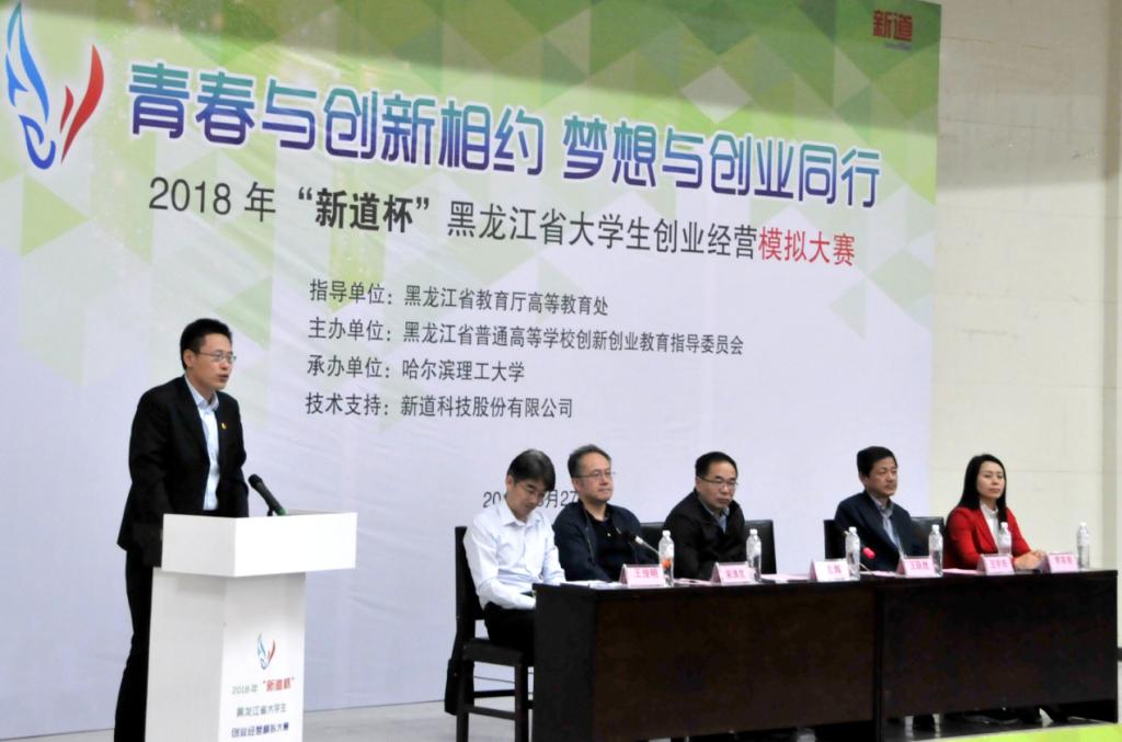 第十四届“新道杯”黑龙江省大学生创业经营模拟大赛于5月27日在我校隆重举行。本次大赛由黑龙江省教育厅高等教育处指导,黑龙江省普通高等学校创新创业教育指导委员会主办,哈尔滨理工大学承办,新道科技股份有限公司做技术支持。莅临本次比赛的领导和嘉宾有黑龙江省教育厅高教处副处长王跃然,新道科技黑龙江区总经理李英琦女士,哈尔滨理工大学副校长刘胜辉教授、教务处处长宋清昆教授、经济与管理学院副院长王宇奇教授,以及省内各高校经管院负责人,我校创新创业教育指导中心主任王俊明教授主持了大赛开幕式。本次大赛共有31所本科院校、62支队伍、400余名师生参赛。大赛期间,来自省内多所本科院校负责经管实践教学、创新创业教育的领导、老师,共同围绕深化产学合作、协同育人,创新高校人才培养机制开展专题研讨会。